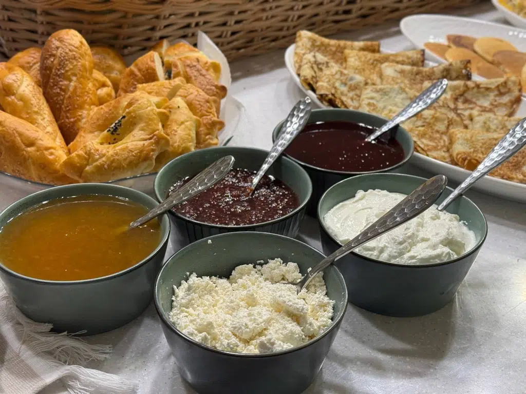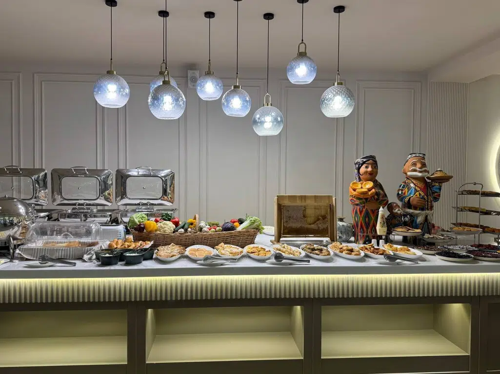 A buffet breakfast at the Emir Han Restaurant is the perfect way to start the day with enjoyment. The menu offers a variety of dishes that will satisfy any taste preferences. You will find fresh fruits, vegetables, cheese and meat delicacies, as well as mouth-watering hot dishes such as omelets, pancakes and boiled eggs. Each guest will be able to choose dishes to suit their taste, enjoying the atmosphere of comfort and hospitality. Breakfast here is not just a meal, but a real feast for all the senses.